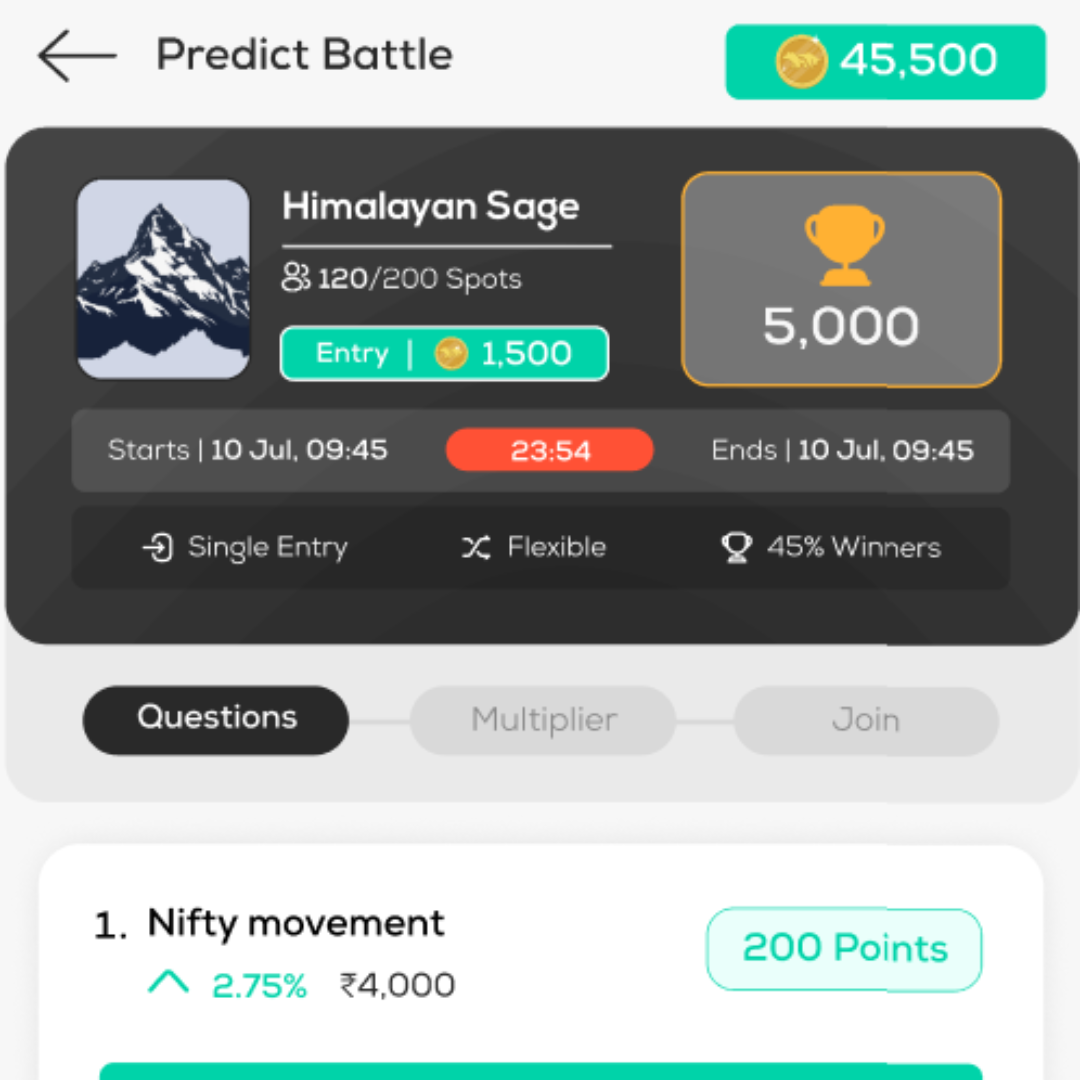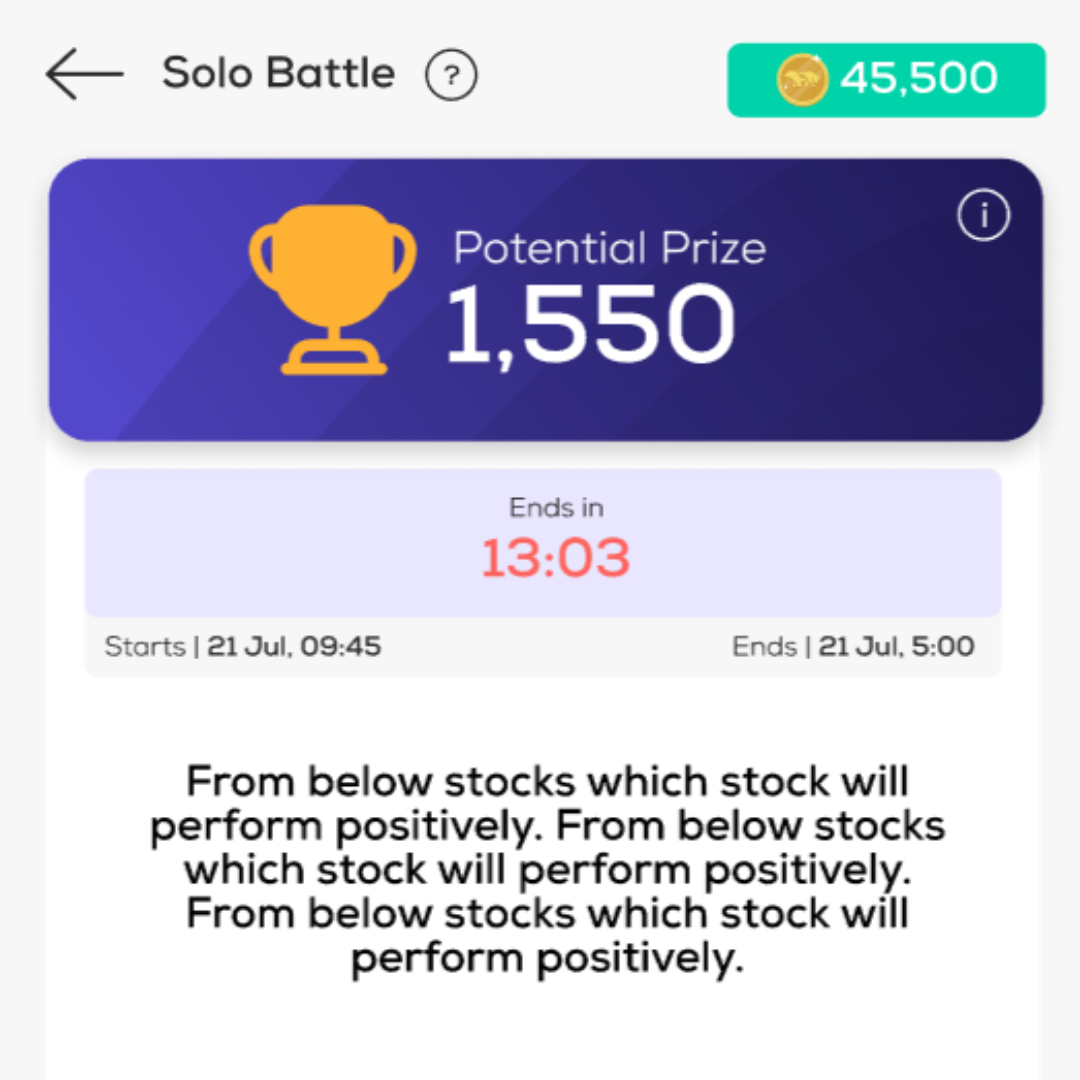 3. Think Fast: The questions are designed to test your quick decision-making skills and stock market knowledge. Accuracy and speed are both crucial. 4. Earn Points: Points are awarded based on how quickly and accurately you answer the questions. 5. Top the Leaderboard: The participant with the highest total points wins the Time Battle. Challenge yourself to answer swiftly and accurately to climb the ranks.